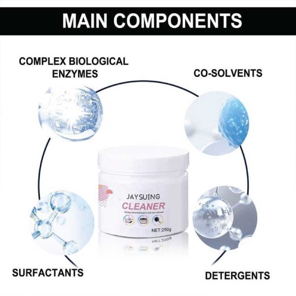 Description:Name: multi-purpose foam cleaning rust powderKeywords: kitchen multi-purpose cleaningNet weight: 100gIngredients: complex biological enzyme, surfacta